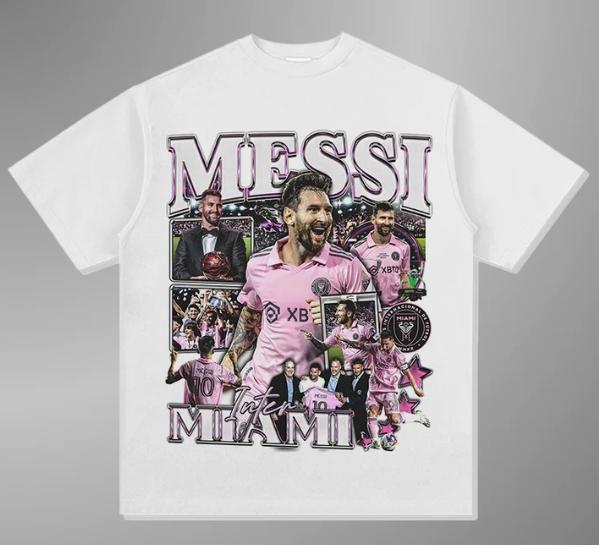 Summer New Classic Crew Neck T-shirt Football Star Messi Y2k Style Flat Print T-shirt Large Size Men's and Women's Top T-shirt