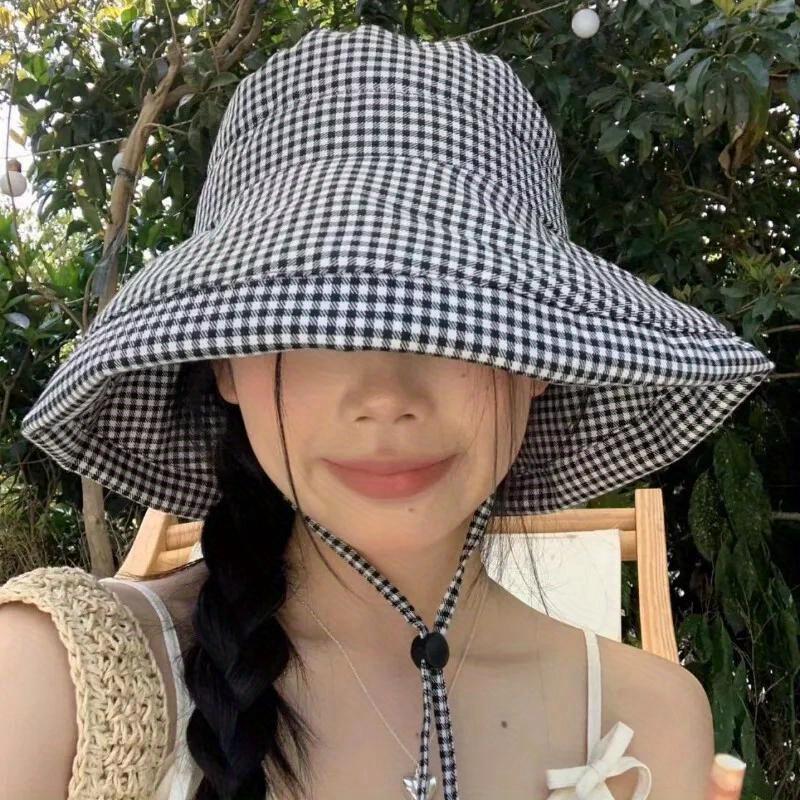 Ladies' Thousand Bird Grid Fisherman's Hat Wide Brimmed Hat Sunshine Summer Leisure Beach Outdoor