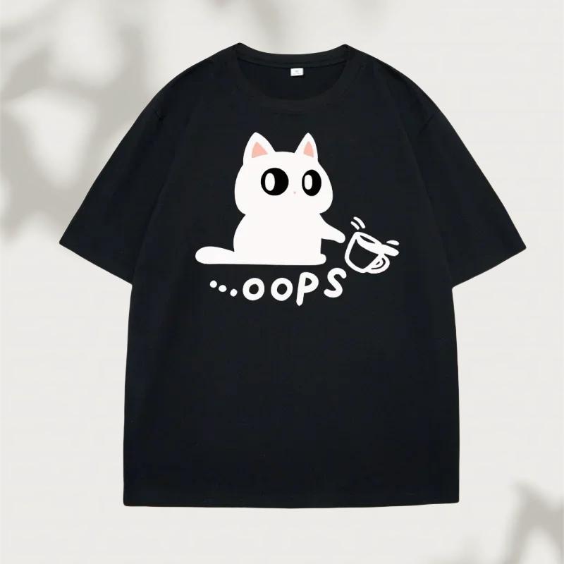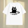 Camiseta divertida con estampado de gato negro Meow Meow para mujer ropa informal de calle con cuello redondo camiseta