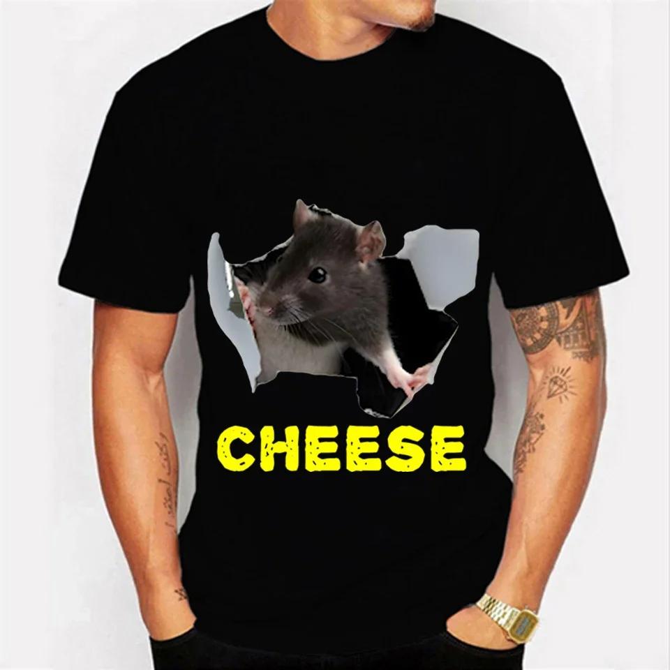 Cheese Rat Print Men's T-shirt Funny Animals Graphic T Shirts Summer Tshirt for Women Men Shirt Oversized Men T-shirt Male Tops