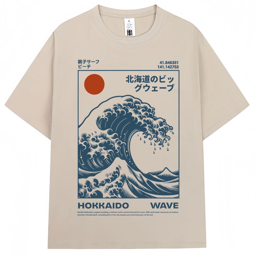 Pánské dámské tričko ve vintage stylu s hokkaidskou vlnou v japonském stylu, móda Harajuku, vysoce kvalitní trička, letní tričko