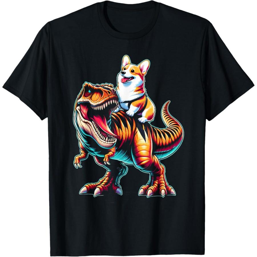 Corgi Riding T Rex Dinosaur Kids Boys T-Shirt