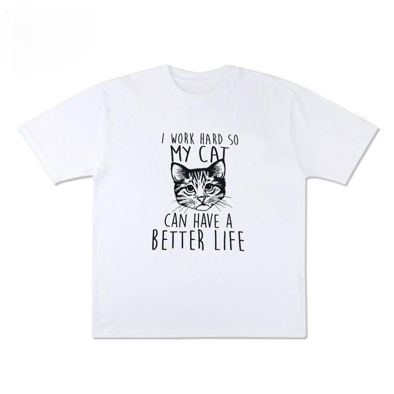 Cat I Work Hard So My Cat Can Short-sleeved T-shirt Summer Pure Cotton Half-sleeved Trendy and Niche Design