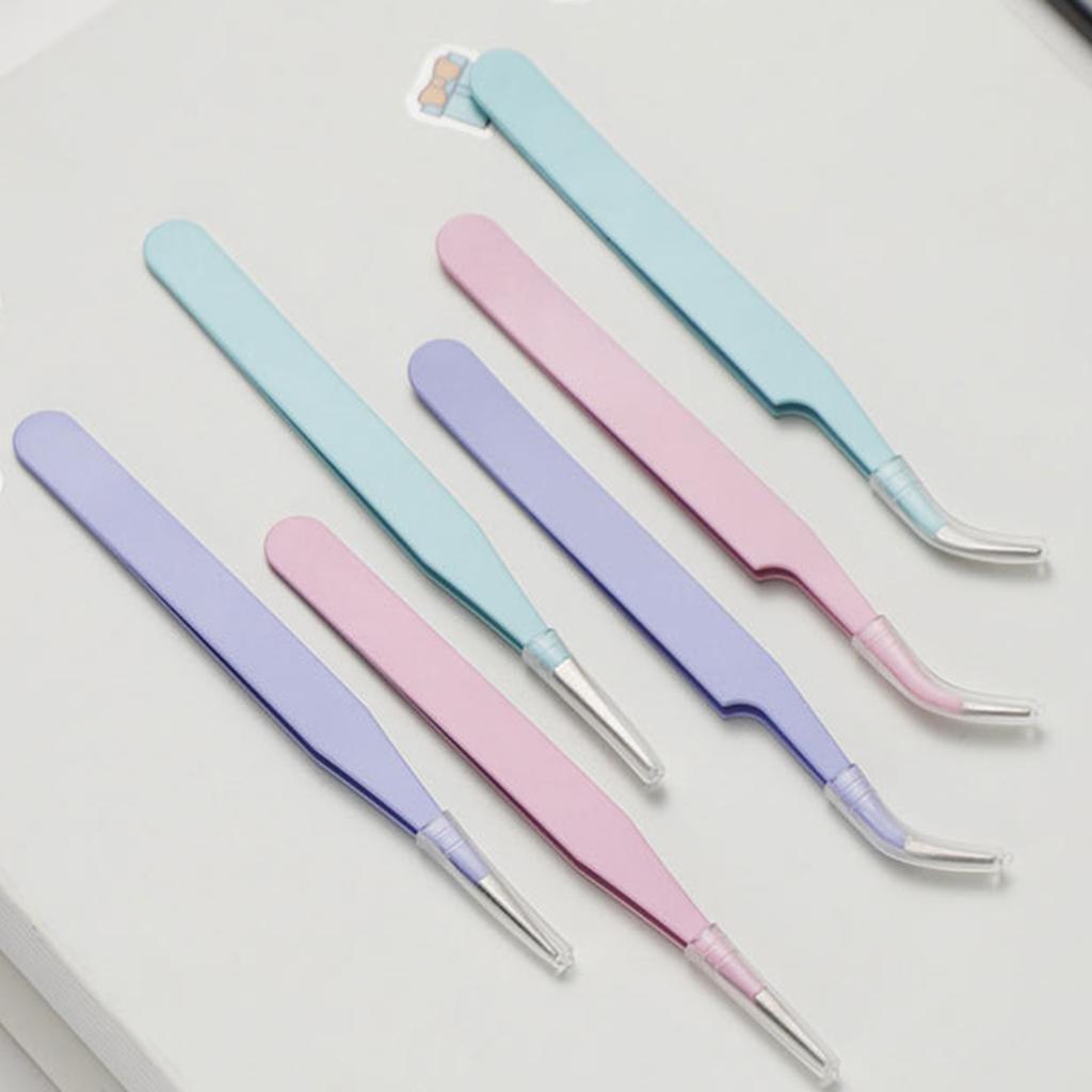 1pcs Macaron Colorful Stainless Steel Tweezers Straight and Bent Tips for Nails Eyelash Makeup DIY Sticker Tools