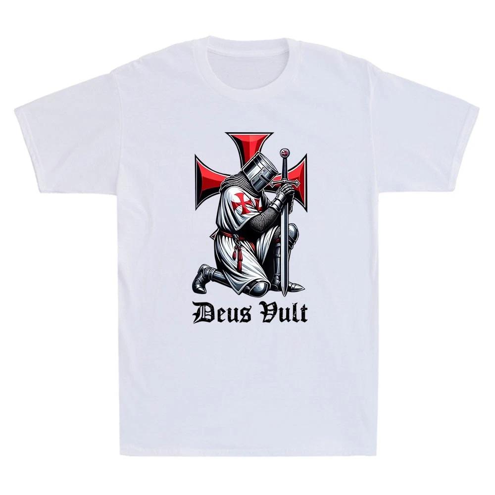 Vzácné Deus Vult Templářský rytíř Křesťanský válečník Křižácký kříž Vintage Pánské tričko High-endový Luxus je pro Muže i Ženy Top Y2k