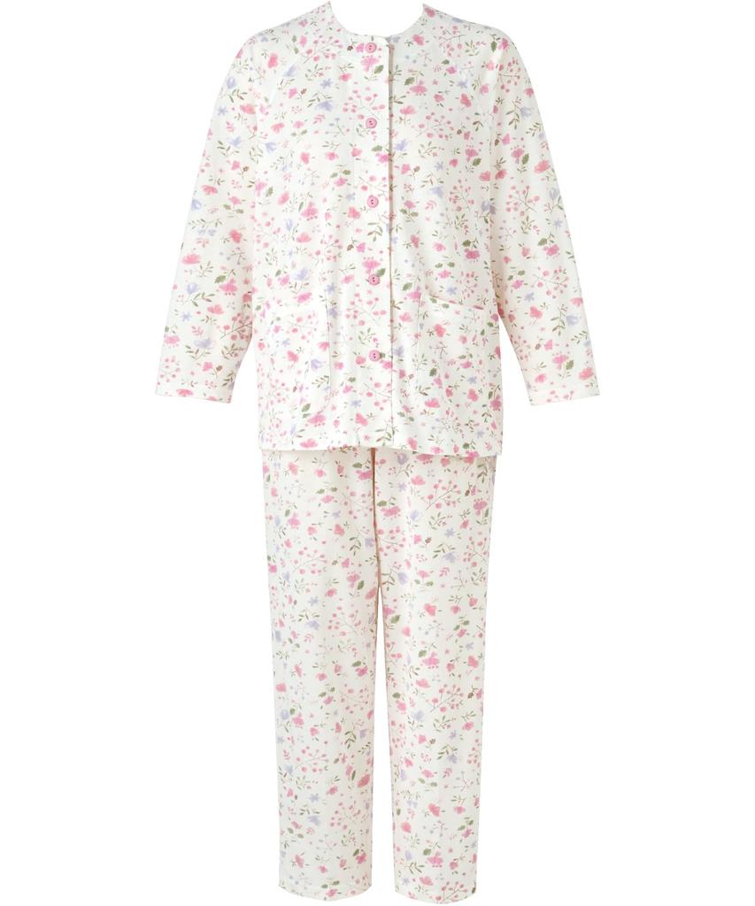 A refreshing print of flowers in pale colors. Made of pique knit material with a finely textured surface that feels comfortable against the skin.