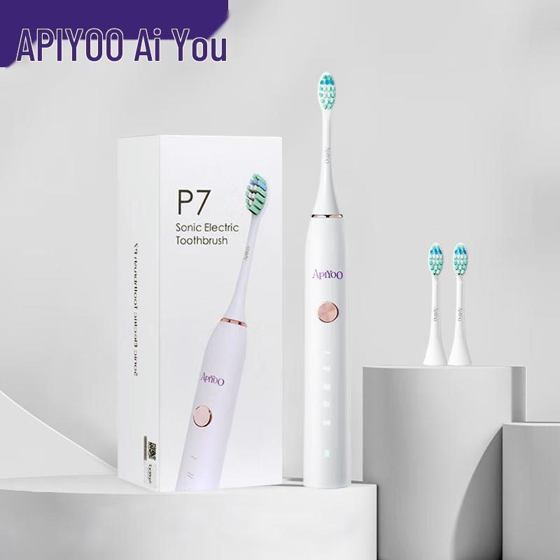 Experience superior oral hygiene with the ApiYoo P7 Sonic Electric Toothbrush. Designed for adults, this advanced toothbrush features sonic vibrations, soft bristles, and three intensity levels for a customized cleaning experience. Its IPX7 waterproof rating allows for full-body washing, and convenient induction charging ensures hassle-free power. Enjoy quiet operation (below 45dB) and an elegant matte white finish, presented in a gift box with two oval brush heads.