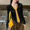 Autumn Winter New Pure Lust Style Short Pure Cotton Long-sleeved T-shirt Women's Slim Versatile Design Tops
