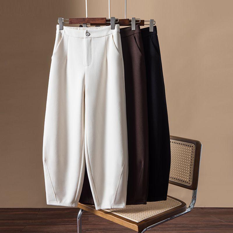 Autumn Winter New Women's Fleece Lined Harem Pants High Waist Loose Cropped Slim Fit Business Casual Suit Trousers