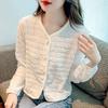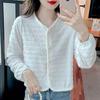 New Style Stitched V-neck Button Fashion Solid Color Versatile Casual Long-sleeved Top
