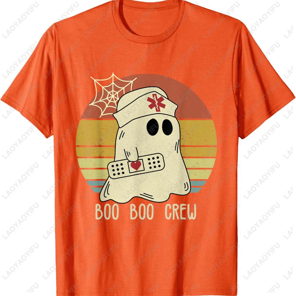 Boo Boo Crew Nurse Halloween Graphic T Shirts Spider Web Woman Men Cotton Tshirt Tops Lovely Ghost Nurse Crewneck T-shirt