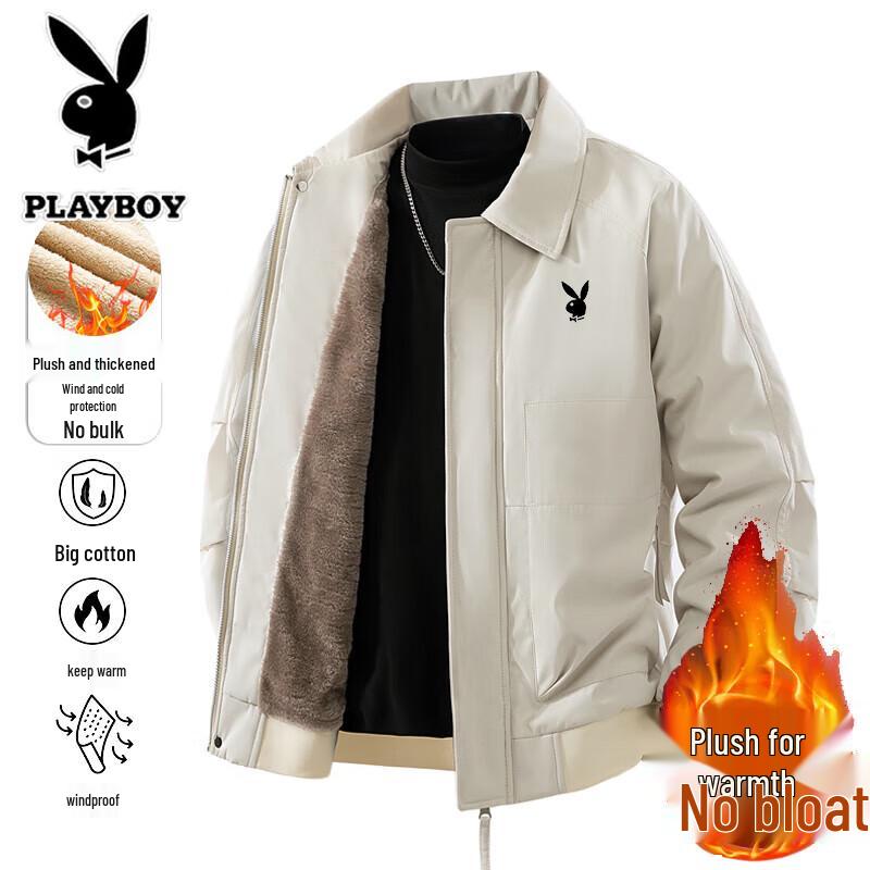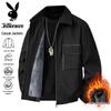 PLAYBOY Men's Autumn/Winter Plush Lined Windproof Lapel Jacket