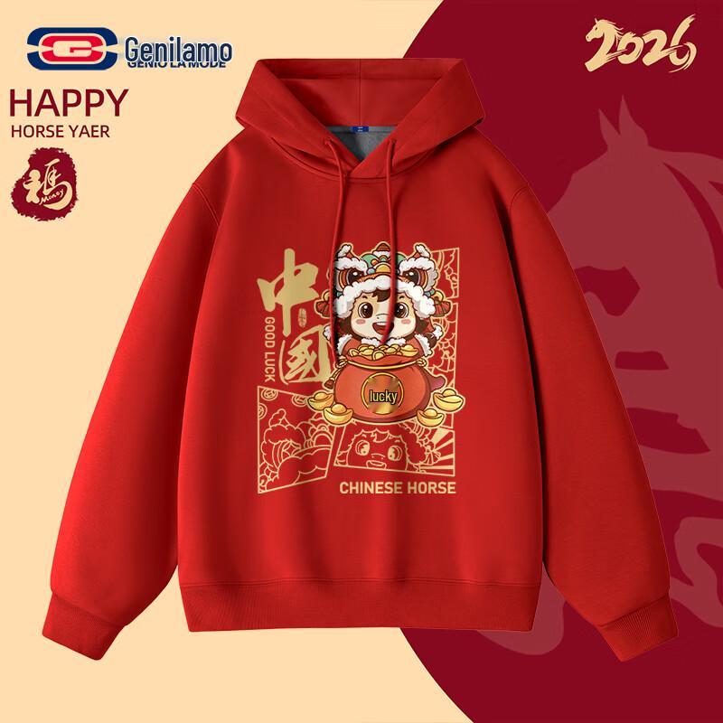 GENIOLAMODE Festive Red Fleece Lined Hoodie