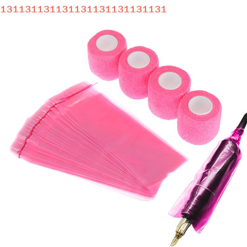 100Pcs Tattoo Machine Covers with Tape Wrap Large Pen Bags And 4Pcs Grip Wrap Combination Pen Sleeves for Tattoo Artists