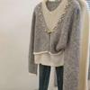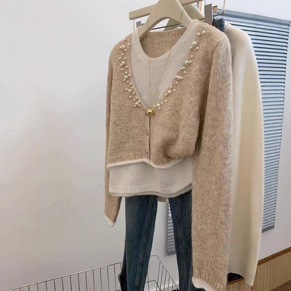 Temperament stacked fake two-piece top women's fashion knitted sweater lazy style high-end design sense niche