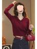 Red v-neck lapel knitted sweater women's spring and autumn early autumn design sweater with bottoming sweater knitted cardigan top