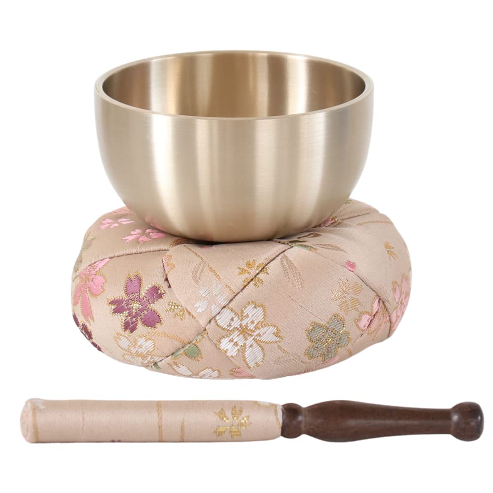 Naamukuma-chan Kobo Sakura Pattern Japanese Orin Set: Orin + Rin Stick + Futon, 2.3 Sun (7cm Diameter), 003. White Tea