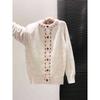 Early spring new apricot soft waxy thickened crew neck sweater jacket women's design lazy knitted cardigan top