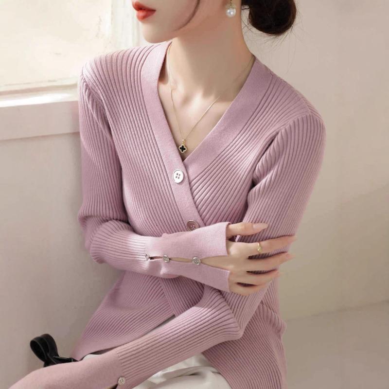 Lazy wind knitted sweater women's summer new long-sleeved high-end super good-looking bottom top