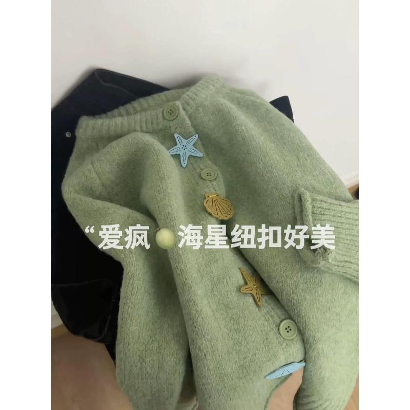 Embroidered crew neck knitted cardigan women's autumn winter clothing new loose sweater jacket women's top