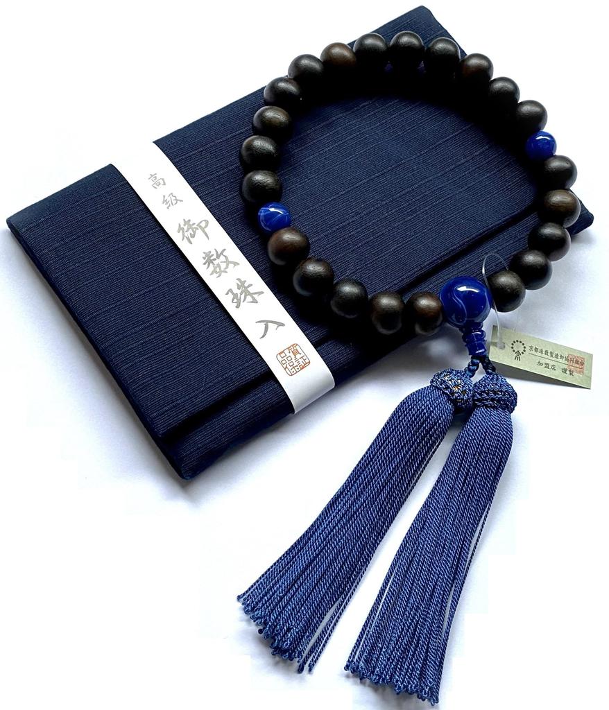 Uguisu Buddhist Prayer Beads for Men, Striped Ebony and Lapis Lazuli, with Prayer Beads Case, One-Handed Prayer Beads, Suitable for Funerals, Grave