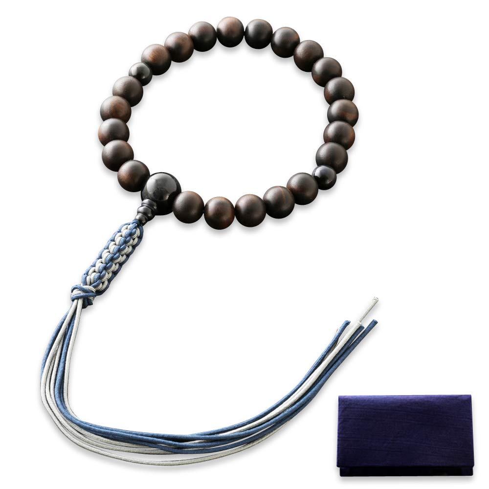 Kyoto Buddhist Altar Hayashi Buddhist Prayer Beads for Men, Pure Silk with Braided Tassels, Striped Ebony, and Three-Heaven Blue Tiger's Eye Pattern