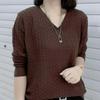 Large Size Autumn and Winter Women's Western Style All-match Long-sleeved V-neck Sweater Women's Solid Color Loose Knitted Bottoming Shirt