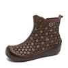 Fashion 3cm Cow Genuine Leather Summer Round Toe Slippers Hollow Platform Wedge Fashion Shoes Ankle Booties Women Sandal Flats