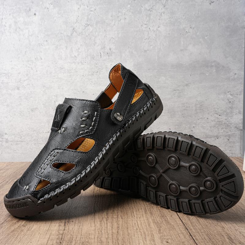 Fashion 2025 Men Leather Sandals Summer Male Shoes Beach Sandals Man Comfortable Outdoor Casual Sneakers Classic men shoes Size 38-46