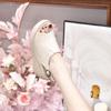 Módní letní nové dámské sandály s rybí špičkou na klínku, kožené zapínání, jednoduché a pohodlné boty na silné podrážce pro ženy