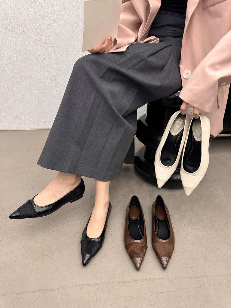 fashion Pointed Toe Women Loafers Autumn Spring Dress Shoes 2024 New Arrivals Casual Black Brown White Flock Fashion Slip On Office Shoe