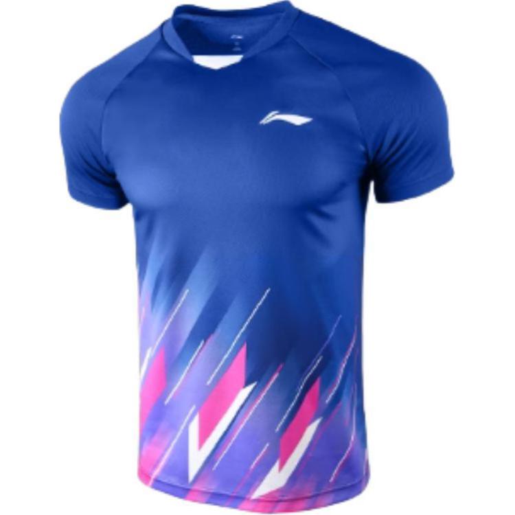 Li Ning Sports Comfortable Training Fitness Logo Short Sleeve Badminton Shirt Men tops Deep-Navy-Blue AAYT537-1