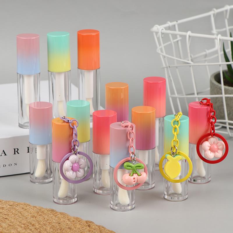 Refillable Lip Glaze Bottle with Keychain – Empty Gradient Tube for Liquid Lip Gloss or Samples