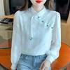 Women's Spring Autumn Blouse Stylish Black Chiffon Chinese Style Shirt with Long Sleeves and A Stand-up Collar
