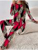 Euroamerická móda 3D retro potisk Dámské celoroční tričko s dlouhým rukávem + Dlouhé kalhoty Dvoudílný set. Perfektní dárek na Nový rok a Vánoce
