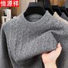 Hengyuanxiang Men's Thickened Cable Knit Wool Blend Round Neck Sweater