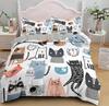 Cartoon Cute Cat Down Duvet Cover 3 Piece Set Single-Sided Printing Bedding Set Comfortable Quilt Cover With 2 Pillowcases