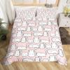 Girls Kawaii Cat Bedding Set Full Queen, Cute Kitten Comforter Cover Cartoon Duvet Cover Colorful Flowers Plant Bedspread Cover