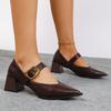 Fashion Metal One-line Belt Square Heel One Knee Autumn New Pointed Toe Shallow Mouth Non-slip Wear-resistant Low-top Shoes