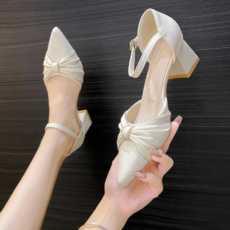 Fashion Shoes Female 2025 Fashion Ankle Strap Women's Pumps Autumn Pointed Toe Solid Color Shoes Ladies Chunky Heels Sexy Dress Heels