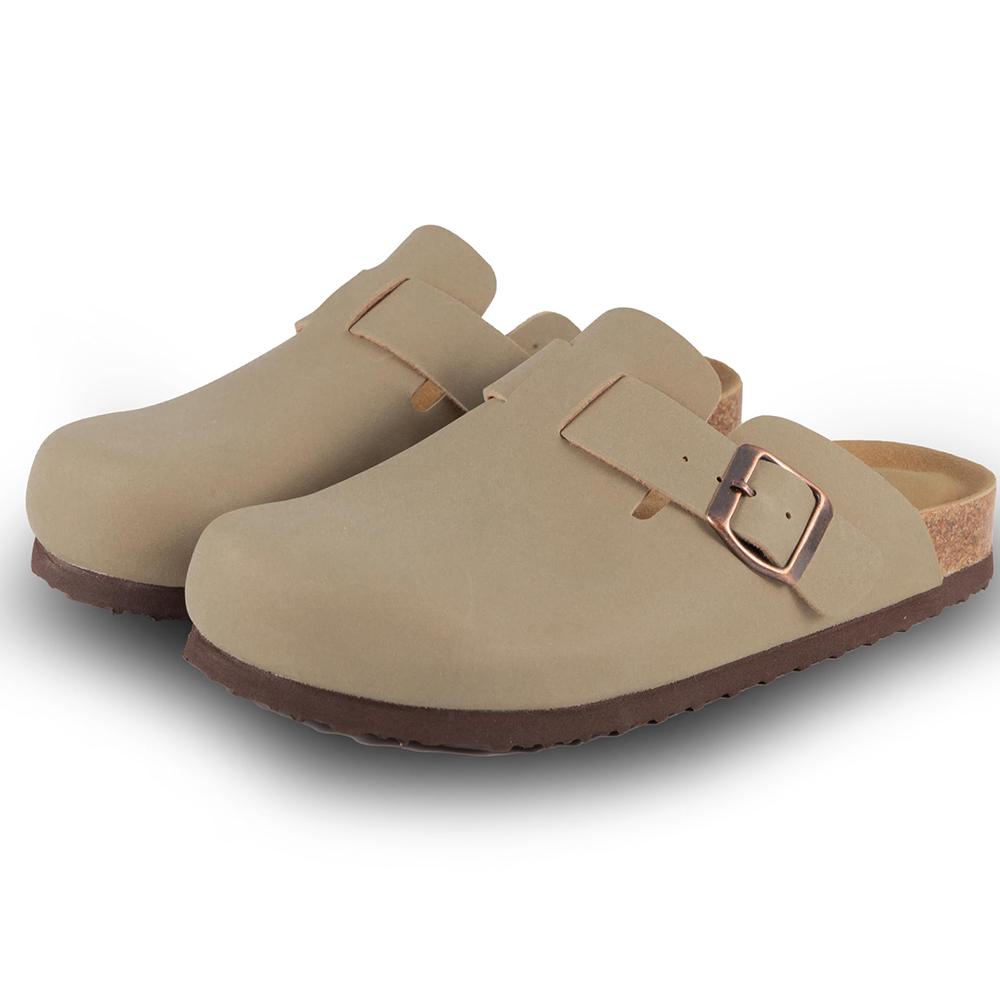 Fashion Kidmi Mens Suede Clogs Women Unisex Leather Mules Soft Cork Footbed Adjustable Buckle Slip Sandals Potato Shoes with ArchSupport