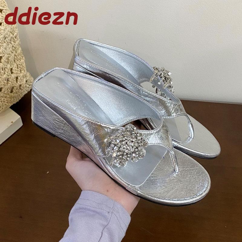 Fashion Luxury Fashion Rhinestones Women Wedges Slippers Shoes Female Flip flops Heeled Sandals Slippers Slides Shoes For Ladies