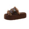 Fashion Fashion Metal Buckle One Strap Platform Slippers Winter New Round Toe Peep Toe Suede Pumps