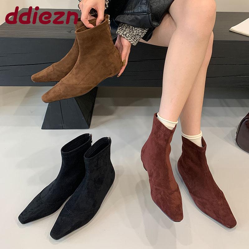 Fashion Fashion Flock Women Ankle Boots Zippers Shoes Female Pointed Toe Footwear Ladies Short Modern Boots With Low Heel Shoes