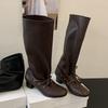 Fashion Female Round Toe Women Knee High Boots With Square Heels Shoes Fashion Lace Up Ladies Modern Long Boots Shoes Pumps