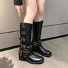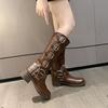 Fashion Belt Buckle Block Heel No Knee Long Thigh Fashion Boots Women's Square Toe Motorcycle Boots