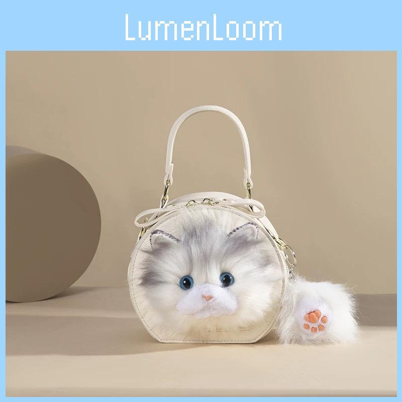 This small round plush bag features a soft, polyester fiber-lined exterior in charming brown or gray, designed with a box-style shape and a fluffy cat plush motif.it provides a lightweight yet durable storage option. The zip closure opens to reveal a dedicated card pocket, supported by dual shoulder straps for versatile daily use. Ideal for casual outings or daily dressing, this cute accessory adds a fresh, sweet touch to any outfit. Wipe clean with a damp cloth to maintain its plush charm.