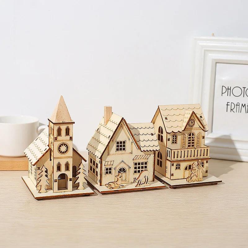 DIY Veselé Vánoce Dekorace Mini Dřevěný Domeček Svítící Chata Závěsné Vánoční Ozdoby Nový Rok Dětský Dárek
