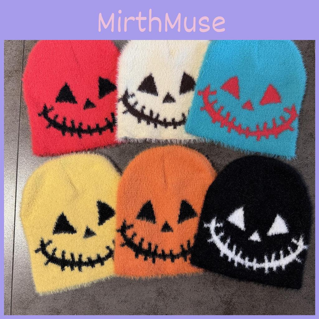 Halloween Themed Knit Cap With Fleece Lining For Autumn And Winter Fashion