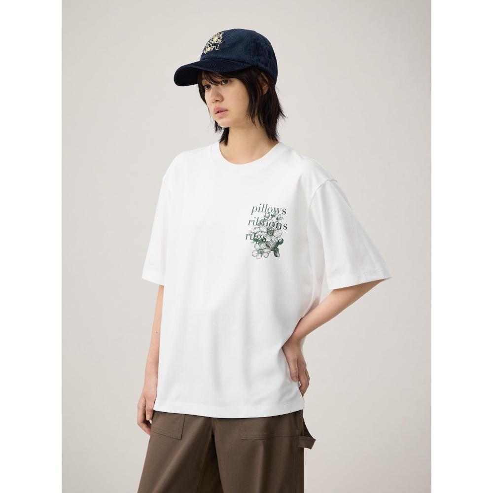 [Product Description] This T-shirt features a relaxed silhouette with an impressive original graphic design. It also uses recycled materials, considering the environment. Care is needed during washing as it may transfer color, so avoid washing with white or light colors. After wearing, shape it quickly and dry it in the shade, avoiding the use of a dryer.